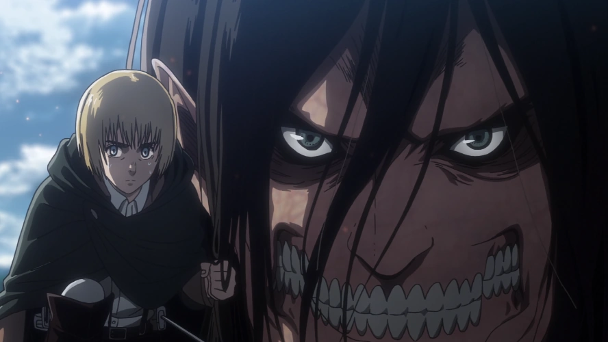 Berthold dreht sich nun um um sich endlich um Eren zu kümmern, nur um zu erkennen dass Erens Titan nicht länger Erens Titan sondern nur eine verhärtete Hülle ist. Im selben Moment schwingt Eren sich in Menschenform hinter Berthold hinauf und saust auf ihn hinab. Der Überraschungsangriff gelingt und Eren schneidet Berthold aus dem Nacken des kolossalen Titanen und reißt ihn heraus. Berthold erkennt geschockt, dass Armins Opfer nur als Ablenkung für ihn diente, bevor er das Bewusstsein verliert. Während der kolossale Titan in sich zusammensinkt und sich langsam in Dampf auflöst, wird der bewusstlose Berthold von Eren auf das Dach in Shiganshina geschleppt, auf dem auch Armin gelandet ist. Während er sich daran erinnert, wie er Armin einst kennenlernte, blickt Eren auf den verbrannten Körper vor ihm herab und murmelt traurig, dass er immer wusste dass Armin der mutigste von ihnen war.