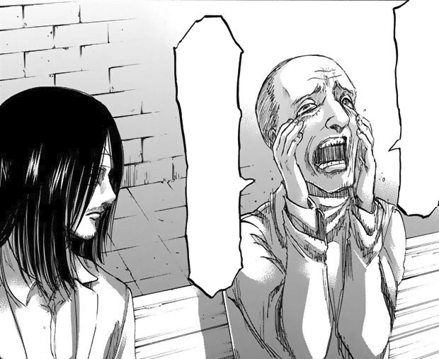 Nachdem die Soldaten gegangen waren, erinnerte Herr Jäger Grisha erneut an die Geschichte der Eldia und dass sie die Marley jahrhundertelang unterdrückt hatten. Trotz des frischen Todes seiner Tochter verteidigte Herr Jäger die Marley und stellte die Eldia und ihre Vorfahren als Verbrecher dar. Als Grisha wütend entgegnete, dass der Soldat zuvor gelogen hatte, schrie Herr Jäger ihn an, dass er still sein sollte und fragte verzweifelt, ob Grisha seine Familie etwa zu einer Existenz als reine Titanen auf Paradis verdammen wollte. Er schloss mit der traurigen Erklärung, dass sie persönlich zwar nichts falsch gemacht hatten, dass dies aber jene nicht interessieren würde, die für viele Generationen zu Eldias Opfern gezählt hatten.