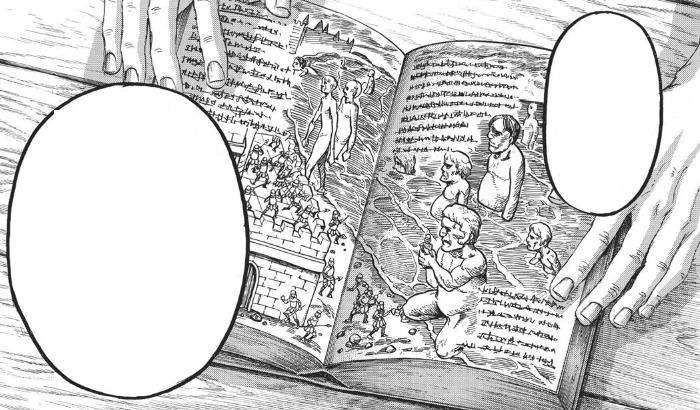 Grisha und Dina Jäger betreten mit ihrem Sohn Zeke einen hohen Turm in Rebellio, von dem aus sie das Ghetto beobachten können, in dem sie eigentlich leben. Grisha bezeichnet das Ghetto als einen Vogelkäfig und fragt den jungen Zeke, ob er diesen Ort nicht irgendwann verlassen will. Als plötzlich eine Reinigungskraft das Dach betritt und an ihren Armbändern erkennt, dass Grisha und seine Familie Eldia sind, kippt er ihnen verächtlich das Wasser seines Putzeimers entgegen und faucht, dass es nun einmal seine Aufgabe ist, den Turm vor Dreck zu reinigen. Zudem beschimpft er die Familie als Dämonen, die in der Vergangenheit nichts als Schrecken und Zerstörung gebracht haben und fragt fassungslos, warum man es den Eldia dennoch erlaubt, sich weiter fortzupflanzen. Auf dem Heimweg, auf dem sie von weiteren Bewohnern von Rebellio beschimpft und ausgelacht werden, tröstet Grisha den weinenden Zeke und behauptet, dass man die Welt verändern muss.