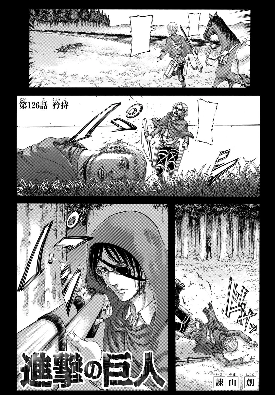 Nachdem Hanji ihre Verfolger eliminiert und Levi zusammengeflickt hat, kommt dieser schließlich wieder zu sich und ist nach wie vor entschlossen, sein Versprechen zu halten und Zeke zu töten. Während der Konfrontation mit Magath und Pieck kann sie die beiden Marley davon überzeugen, dass sie zusammenarbeiten müssen. Armin und Gabi können derweil zu Connie und Falco aufholen und es gelingt Armin, Connie von seinen Plänen abzubringen. Die vier machen sich auf den Weg zurück nach Shiganshina, wo sie zufällig auf Annie treffen.