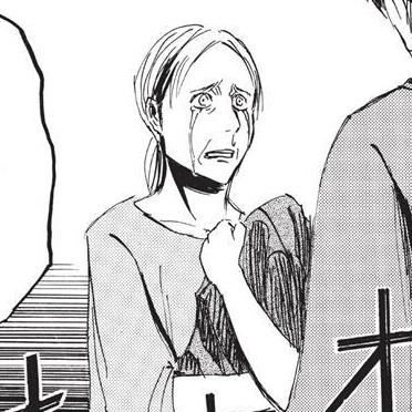 Moses Mutter lebt in Shiganshina. Ihr Sohn Moses ist ein ehemaliges Mitglied des Aufklärungstrupps.