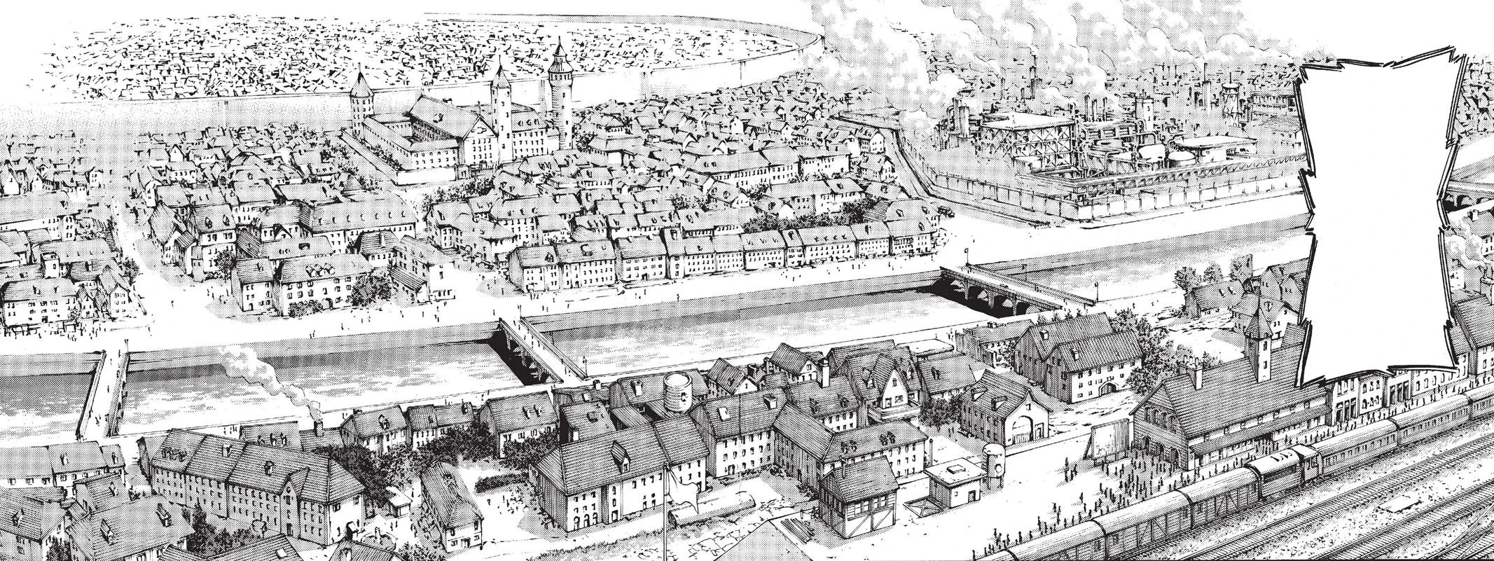 Die Stadt Rebellio aus der Vogelperspektive