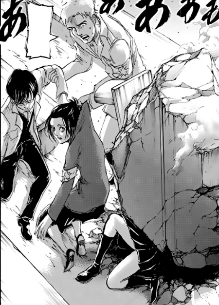 Während Willy der versammelten Gruppe seinen Vortrag hält, hören Gabi, Udo und Zofia gebannt zu; Falco ist zuvor mit Reiner verschwunden. In dem Moment, in dem Willy Tybur die versammelten Politiker und Würdenträger darum bittet, sich zusammen mit Marley für einen Krieg gegen Paradis vorzubereiten, bricht auf einmal der Titan Eren Jäger aus der Häuserwand hinter Willy hervor. Gebäudetrümmer werden ins Publikum geschleudert und zerquetschen dutzende von Menschen. Unter den Opfern ist auch Zofia, die von einem der Felsen erschlagen wird.[6]