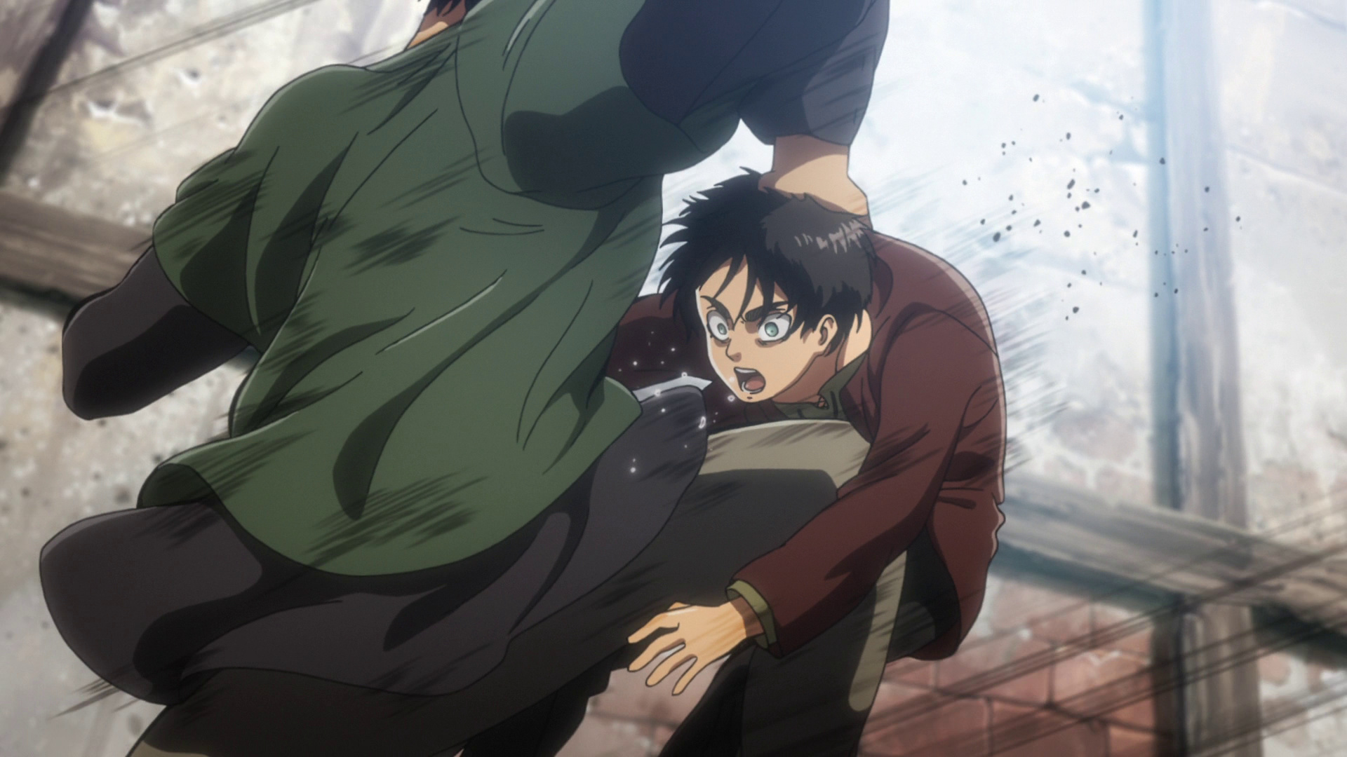 As palavras de Annie continuam a incomodar Eren, que fica irritado com a ideia de cadetes tentando melhorar suas habilidades apenas para ficar longe dos Titãs. Eren confronta Jean por possuir tal mentalidade, o que leva a uma altercação física entre os dois. Eren facilmente termina a luta replicando os movimentos de Annie e começa a dar um sermão em Jean por ter relaxado durante seu treinamento.