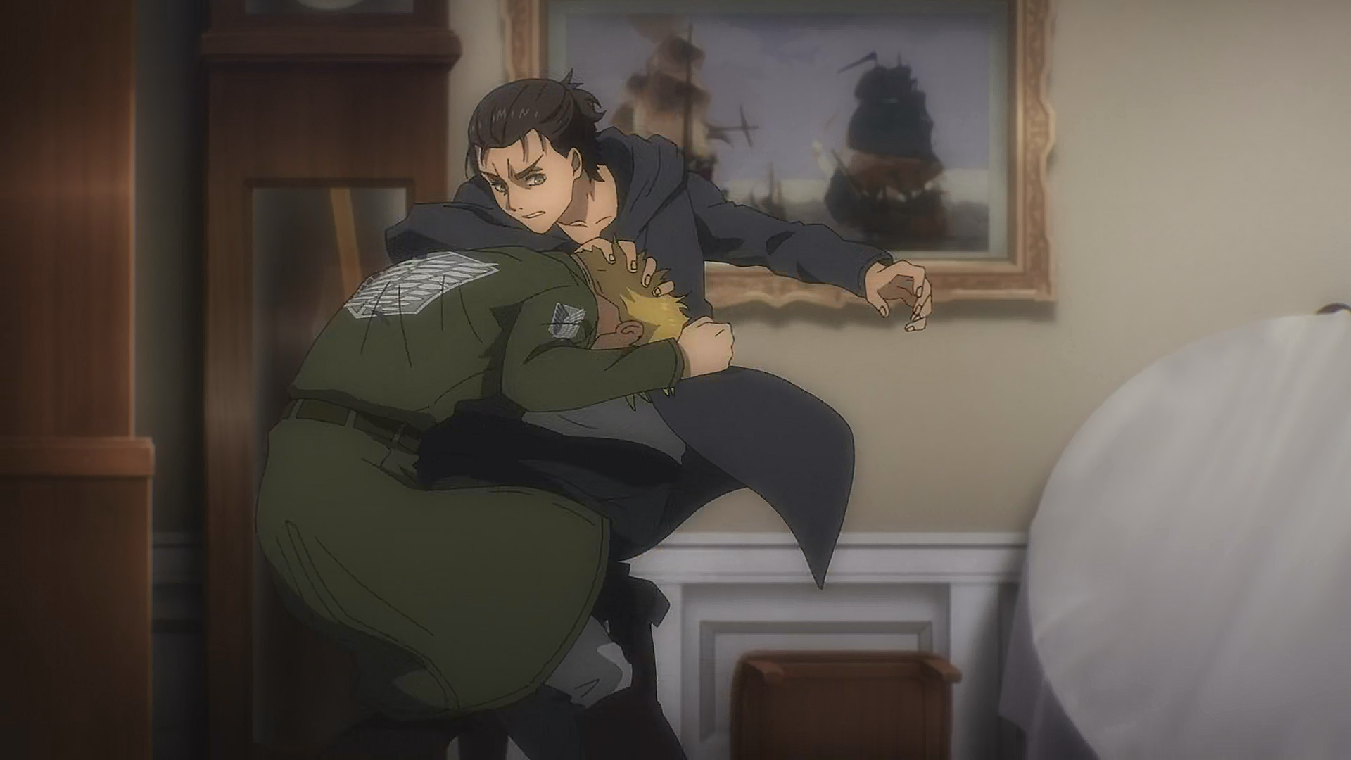 Eren discute com Hannes sobre a necessidade dos soldados ficarem sempre em alerta