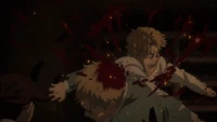 Refugiados em um prédio, Falco e Gabi estão surpresos com o estado em que Pieck foi deixada. Falco observa que seus ferimentos são tão graves que seu corpo não está se recuperando rápido o suficiente. Gabi pergunta a Falco sobre Reiner, e Falco responde que não sabe, já que ele estava embaixo do prédio atrás do palco durante o ataque de Eren, e ele acha que eles não deveriam perturbá-lo. Gabi fica chocada com as palavras de Falco, lembrando-o de que Udo, Zofia e muitos outros foram mortos por Eren.