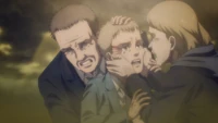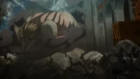 As crianças logo testemunham o Titã de Ataque derrotando e tentando morder a nuca do Titã da Mandíbula, o que os leva a gritar desesperadamente por Reiner para salvá-lo. Seus gritos são bem-sucedidos quando Reiner surge em uma forma de Titã sem armadura.[6]