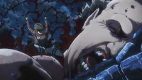 O Castelo Utgard logo é atacado por vários Titãs capazes de se mover durante a noite. Como os soldados que estavam sob suspeita não possuem equipamento de mobilidade omnidirecional , Gelgar e Nanaba assumem a liderança no combate aos Titãs. Porém, Gelgar rapidamente fica sem espadas e, após sofrer um ferimento na cabeça, perde forças para continuar lutando.