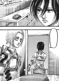 Enquanto ela está no hospital, Louise recebe a visita de Mikasa. Louise lamenta não ser capaz de ver o plano de Eren se concretizar e menciona que uma vez ela falou com ele sobre Mikasa. Ela afirma que Eren disse a ela para jogar fora o cachecol de Mikasa e que ela escolheu usá-lo sozinha, o que levou Mikasa a exigir que ela o devolvesse. Quando Mikasa vai embora, Louise afirma que não se arrepende da vida e viveu, dedicando seu coração.