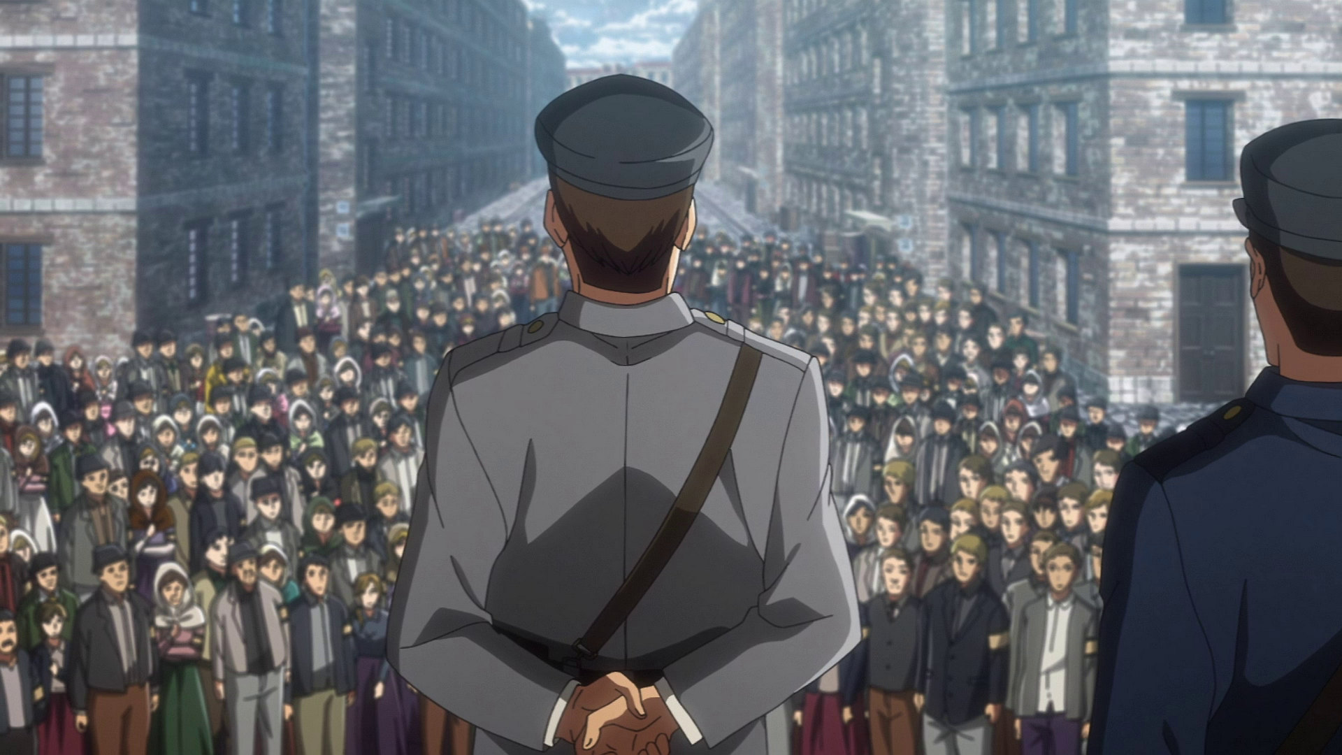 Oficiais de Segurança Pública de Marley se preparam para transformar Eldianos em Titãs Puros