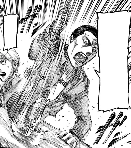 У міру підготовки розвідників, Жіноча Особина приваблює гучним криком групу Титанів. Кейджи приєднується до своїх колег-розвідників, намагаючись вбити всіх титанів, щоб утримати їх від пожирання Жіночої Особині, але зрештою Титани перевищують їх кількістю і вони вимушені відступити.