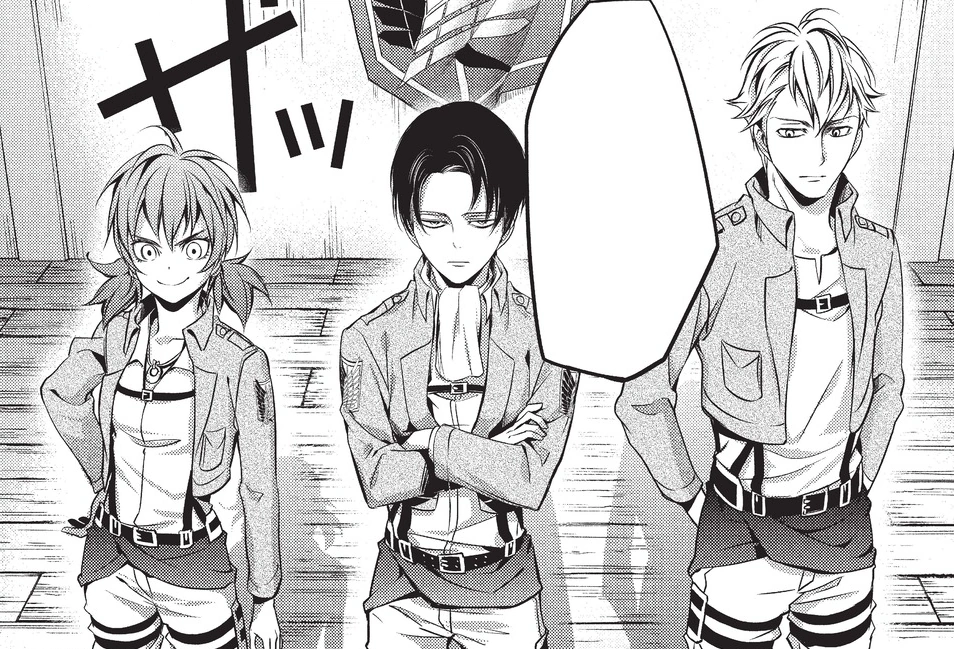 The Survey Corps staff are in a meeting discussing Levi, Isabel and Furlan's entry into the military without training. Flagon complains that it is a breach of the rules but Erwin responds that this will be 'a key part of the reform'.