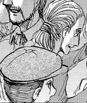 When Flegel Reeves tricks a member of the Military Police Brigade into admitting that Dimo Reeves was assassinated by the Military Police for trying to help the Survey Corps, this man is among the Trost citizens to reveal themselves to have been listening, promising that he will attest to what the Military Police member said.[35]