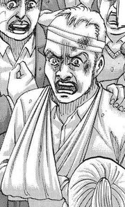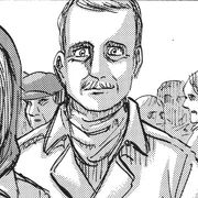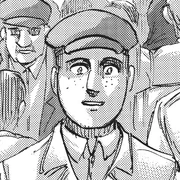 He appears in the underground city among the other refugees, who had to flee because of Titans appearing in Wall Rose and are receiving rations from the military.[22] He and the other evacuees are allowed to return home later on after confirmation that Wall Rose is still intact.[23]