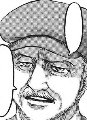 This man is present during the trial of Eren Yeager. When Erwin Smith recommends developing a new route to Wall Maria, this man retorts by saying that they should instead seal off all the gates permanently, as the Colossus Titan has only been able to destroy the gates in the walls.[16]