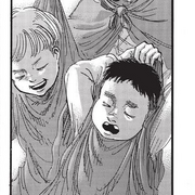 These three children in Orvud District are spotted by Eren Yeager as he prepares to fight Rod Reiss's Titan. They are then shown watching in horror as Rod Reiss' Titan emerges from over the top of the Wall.[33]