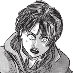 Eren Yeager (エレン・イェーガー Eren Yēgā?) was a former member of the Survey Corps. He was the main protagonist of Attack on Titan. He lived in Shiganshina District with his parents until the fall of Wall Maria, where he impotently witnessed his mother being eaten by a Titan.After Eren is woken from a nightmare by Mikasa, the two walk home through Shiganshina. They are harassed by Hannes, who begins teasing Eren for having apparently cried in his sleep. Eren is annoyed to see that Hannes and his friends are slacking off on the job and refuses to be placated by their claims that the Titans will never breach Wall Maria. Leaving Hannes behind, the children stop again to watch the Survey Corps return from an expedition and Eren is crestfallen to see that the Corps has returned defeated.