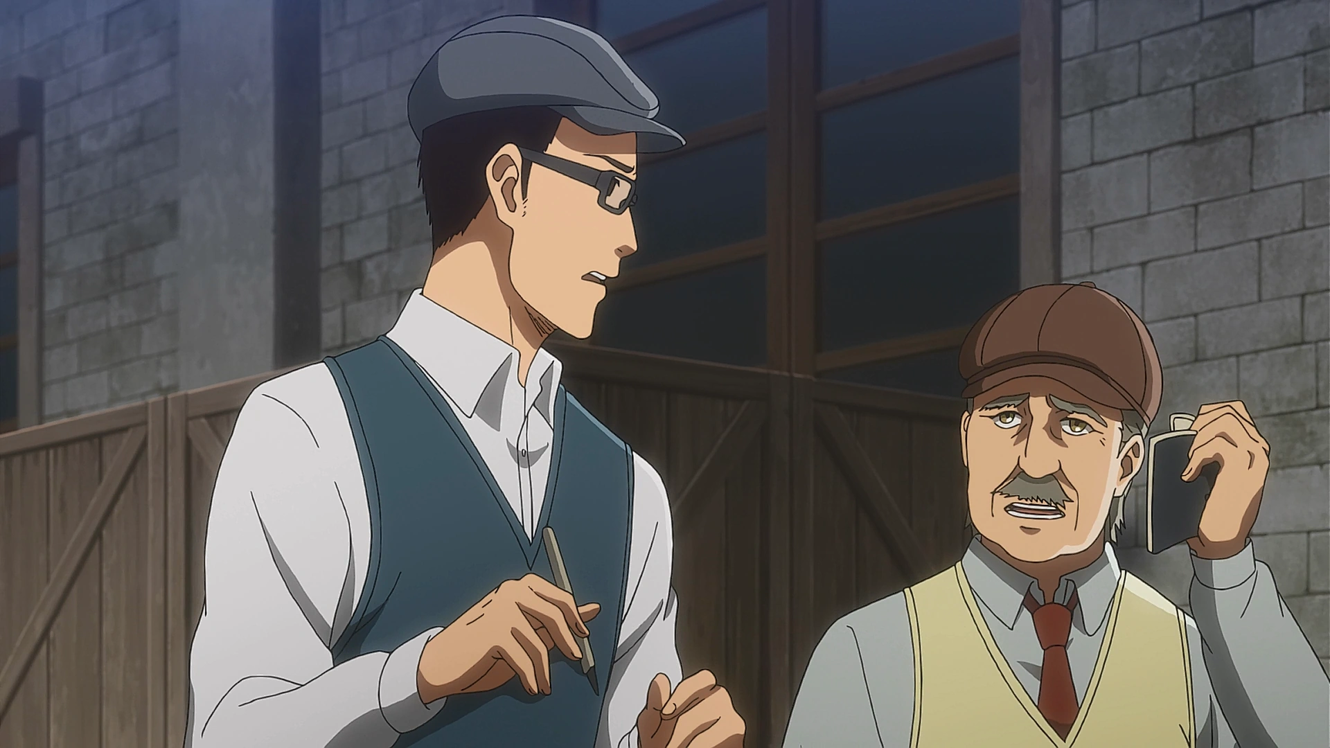 When the government takes the decision to publicly reveal the information they learned from Grisha Jaeger's books, the Berg Newspapers participate. Roy and Peaure later meet Hange Zoë, who has become the commander of the Scout Regiment, and Levi Ackermann. They discuss the recently revealed information, the reactions of the people, and Roy's worries for the future.[4]
