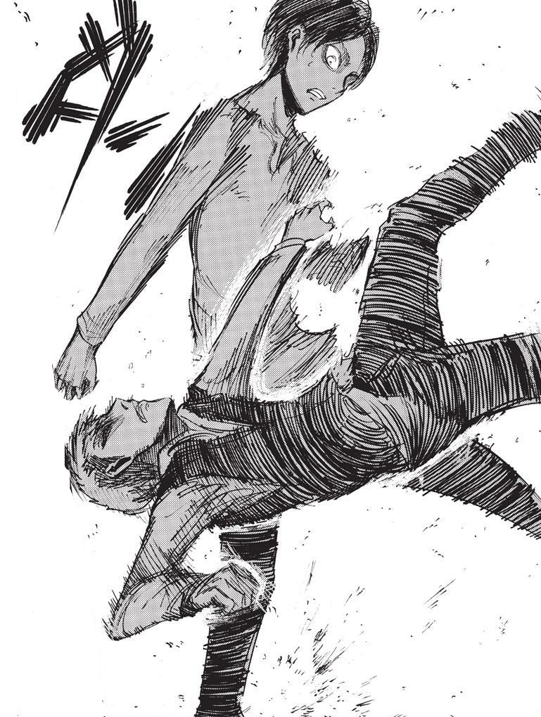 Eren and Reiner are practicing hand-to-hand combat when they see Annie Leonhart slacking off and Reiner volunteers Eren to challenge her. After they duel and she easily defeats both of them, Eren asks her where she learned to fight. She states that all of this is pointless, and gives him a closer look inside the military system. Later on in the mess hall, Eren hears Jean Kirstein bragging about his skills. Annoyed, this causes Eren to fight with him and flips Jean with Annie's technique when he grabs Eren's shirt, lecturing him and saying he is a coward only joining the Military Police Brigade for safety, catching Annie's attention. When the sound of the commotion attracted the instructor, Mikasa passed it off as Sasha Blouse passing gas, much to her embarrassment. The next day in the training grounds, Annie and Eren notice Jean working harder. When Eren asks Annie for her opinion on his kicks, Annie dismays them and offers to teach Eren. When he turns her down she tells him he does not need to hold back and Eren agrees to the lessons.