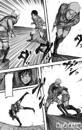 Delusions of Strength (武力幻想 Buryoku Gensō?) is the 4th chapter in the 4th volume and the 17th chapter overall of the Attack on Titan manga, written and illustrated by Hajime Isayama.