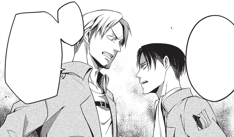 When Keith assigned the trio to his squad, he again showed displeasure and asked why they were not assigned to Erwin's squad. Keith replied that Erwin was already tasked with the soldiers' formation.[3] Flagon then led the new recruits to their new room and told them to try to keep the place clean, insinuating that they did not have good hygiene because they had been living in the underground.[4] This angered Levi, who was actually a clean freak and had just found dirt behind one of the beds.