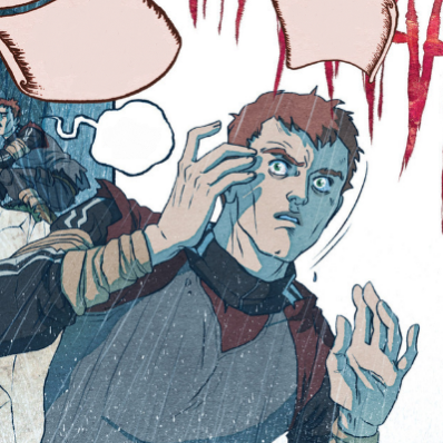 He showed annoyance as the druidess asks about the rituals and dryly asked to get his reward, some devine. Once he got it, he did not thanked the druidess and headed back to his home. Once arrived, he ignored the pleas of his lover, Greti, who was with child and asking him to talk because he did not do much to help at home. To this he showed no interest and drank the devine before taking a nap. When a Titan attacked the village, he was still under the influence of the devine and was a simple bystander. Thus when he was tasked to shoot a flammed arrow to blow up the Titan, he failed and reacted as if it was some unimportant clumsiness. Afterwards, the remaining inhabitants, included himself, had to wander in the woods, no longer admiring their chief. Somehow, he lost memories of those events.[6]