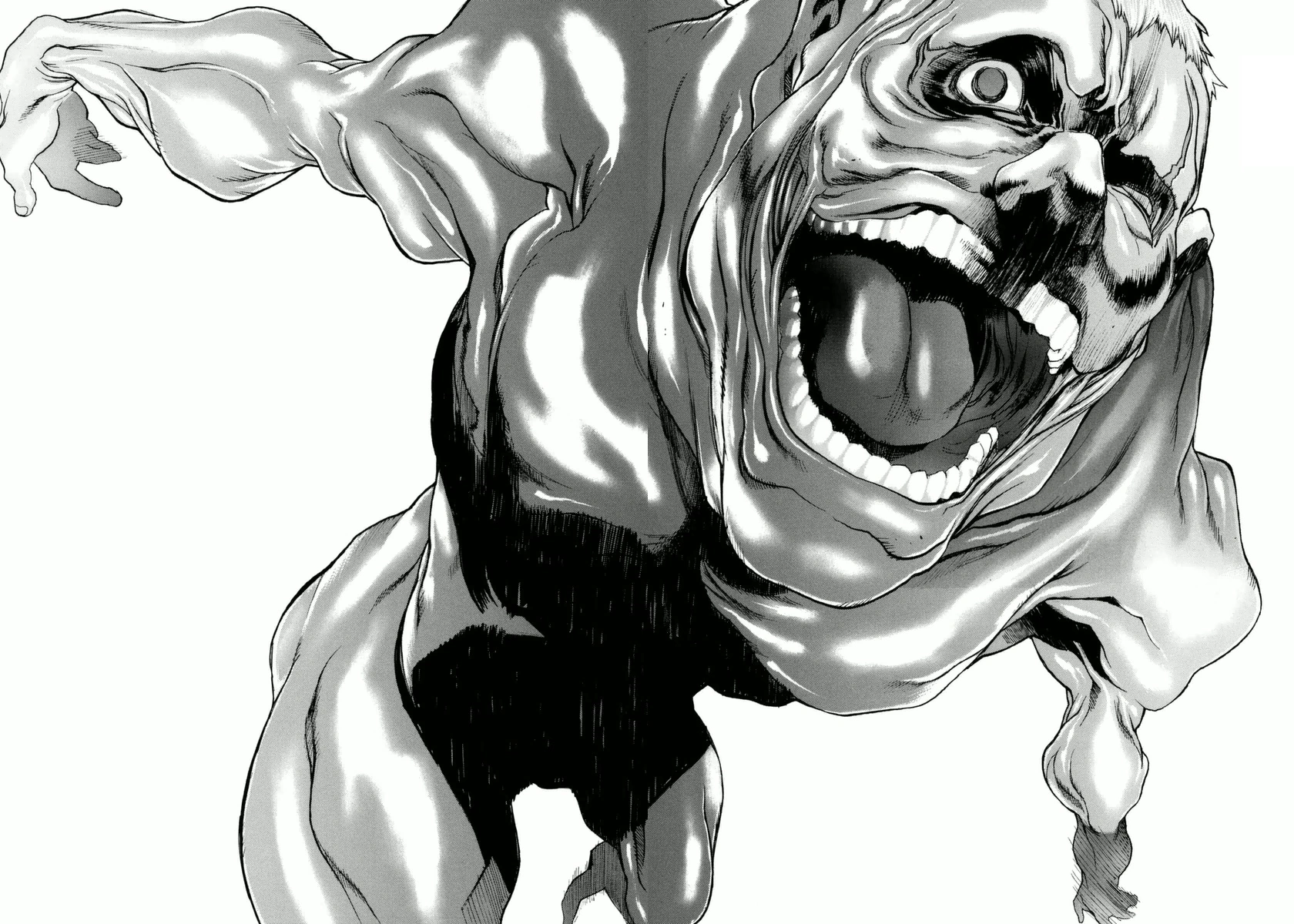 As the Titan comes into view on the horizon, Kuklo is horrified at the sight of it, and immediately comes to the conclusion that he is not a Titan. Carlo instructs Kuklo to flee, but Kuklo finds himself frozen in place in fear. As the Corps begins to flee, Kuklo snaps out of his trance and returns to the covered wagon he had been hiding in. Inside the wagon, Kuklo searches for a weapon as the tarp covering the wagon is torn away. Kuklo watches as soldiers attack the Titan's legs, causing it to lose its footing and fall. As dust is kicked up by the Titan's fall, Kuklo notes that the Corps is still far away from Shiganshina and wonders if they will be able to return to Shiganshina. As he turns back to observe where the Titan fell, Kuklo is horrified to see that the Titan has gotten back up and is quickly gaining on the Corps.