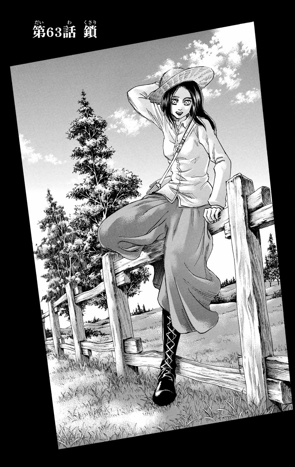 About to inject the Titan serum and transform, Historia recalls memories from her past involving Ymir, Frieda, and her time as a trainee in the 104th Training Corps. After having a flashback of Ymir telling her to live her life with pride, Historia abandons Rod's plan and instead attempts to release Eren. They reunite with Levi's squad and prepare to escape, however Rod ingests the serum and begins to transform into a Titan. Faced with a crumbling Wall and a towering Titan estimated to be larger than the Colossus Titan itself, Levi tells Eren to make his own choice. Eren believes in himself and bites into a vial labelled "Armor," jumps off the ledge and transforms, facing the Titan before him.