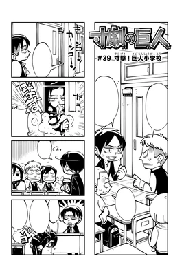 Spoof! Titan Elementary (寸劇!巨人小学校 Sungeki! Kyojin Shōgakkō?) is the 12th chapter of the 2nd volume and the 39th chapter overall of the Spoof on Titan manga, written and illustrated by hounori.