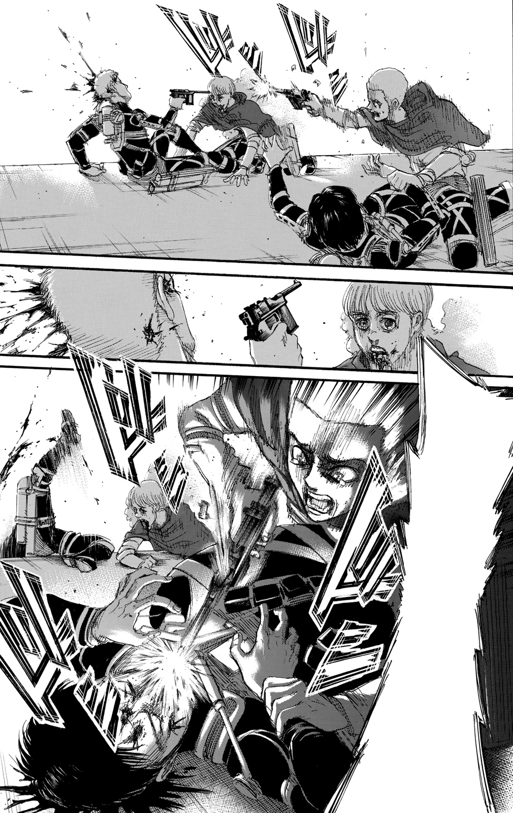 - ↑ Attack on Titan manga: Chapter 100 (p. 37 - 45)