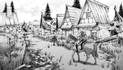 The Great Titan War ends. The nation of Marley would retain control of a large portion of the world beyond Paradis Island throughout the next century, using the power of the Titans.[27] Hizuru's reputation is tarnished due to their association with Eldia.[28] The Eldians who did not flee overseas would become low-class citizens of Marley, forced to live in internment zones separate from the rest of the population.[29] After gaining control over the mainland, the Marley government promotes the story that Ymir Fritz had gained the Titan's power through a deal with the "Devil of All Earth," who was slain by their hero Helos during the war.[2][30][31] King Fritz informs both the Fritz family in Marley and the Tybur family that he has made a vow renouncing war to the Founding Titan, and that there will be no retaliation if and when Marley chooses to enact a final solution against Eldia.[32] However, he asks that he and his people should be given a brief age of peace before their retribution.[33] [34] The King uses the power of the Founding Titan to erase the memories of the Subjects of Ymir. The Subjects successfully forget their history, but minority groups not sharing the majority's common bloodline such as the Ackerman clan and the Asian clan are unaffected by the mind wipe. Many of the minority groups swear to secrecy at the King's request and gain noble status,[35] but the Ackerman and Asian groups give up said status, turn against King Fritz, and are hunted down.[36] For the safe-keeping of the Founding Titan, the royal family lives in hiding as the noble Reiss family while another bloodline takes the place of the Fritz family as a false monarchy.[37] The 145th Fritz King, now the First Reiss King, creates an underground cavern where the Founding Titan can be passed down to successors within the royal family. Some time afterward, a chapel is built above the entrance to the cavern.[38] |