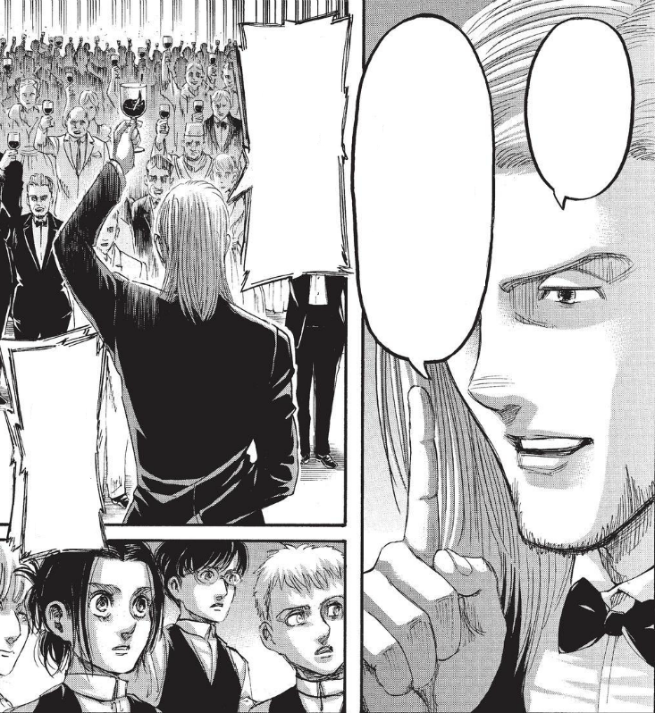 - ↑ Attack on Titan manga: Chapter 113 (p. 3-30)