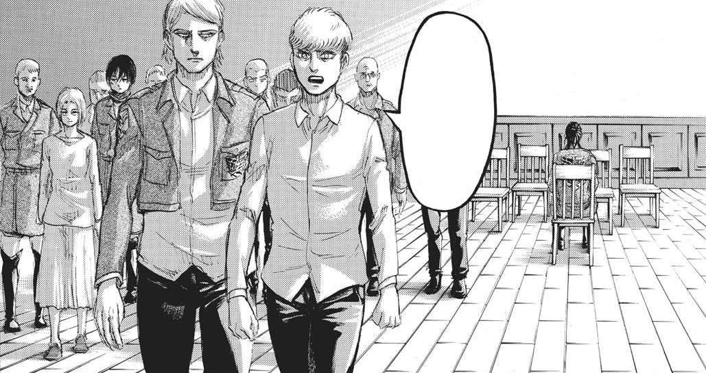 - ↑ Attack on Titan manga: Chapter 110 (p. 7)