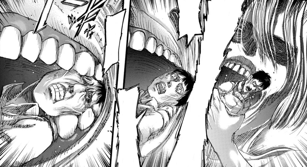 | 842 | Frieda Reiss eats her uncle Uri Reiss, inheriting the Founding Titan and succeeding him as monarch of Eldia.[88]