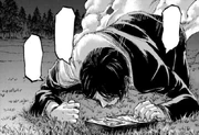 After torturous interrogation at the hands of the Marleyans overseen by Officer Kruger, the Eldian Restorationists are sent to Paradis Island. Many of the Restorationists, including Dina Fritz, are turned into Pure Titans. Kruger turns against the Marleyans before Grisha was to be killed, revealing himself to be the Owl and an inheritor of one of the Nine Titans. In his Titan form, Kruger kills the soldiers of Marley.[71][72] Kruger informs Grisha of his past, the nature of the Titan's power and the "Curse of Ymir," and his desire to see the Founding Titan retrieved from the Walls. Grisha reluctantly accepts the duty from Kruger, turning into a Titan and eating Kruger, inheriting the power of the Attack Titan. Grisha transforms for the first time and uses the Attack Titan to safely reach the Walls.[73][74] Some time later, Keith Shadis of the Survey Corps discovers Grisha Yeager outside the Walls of Shiganshina District in a state of amnesia. He takes him into Shiganshina and teaches him of human life within the Walls.[75] |