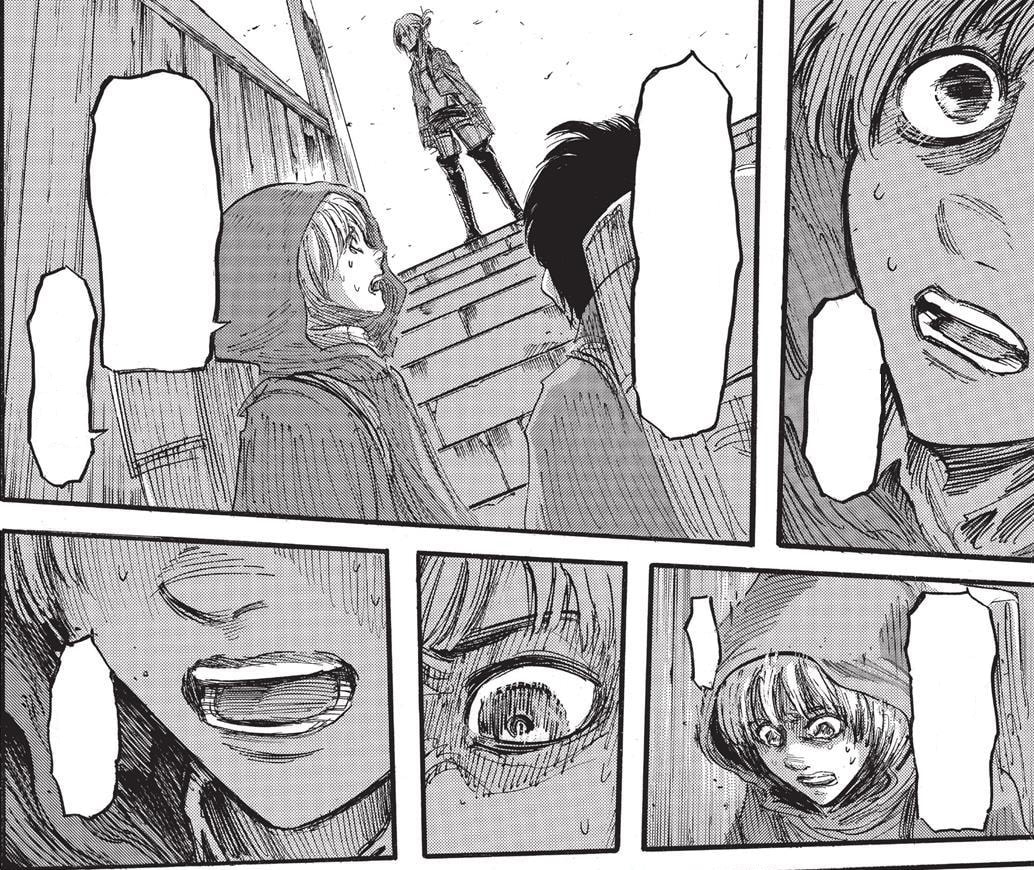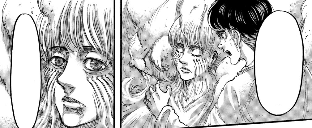 - ↑ Attack on Titan manga: Chapter 111 (p. 44 & 45)
